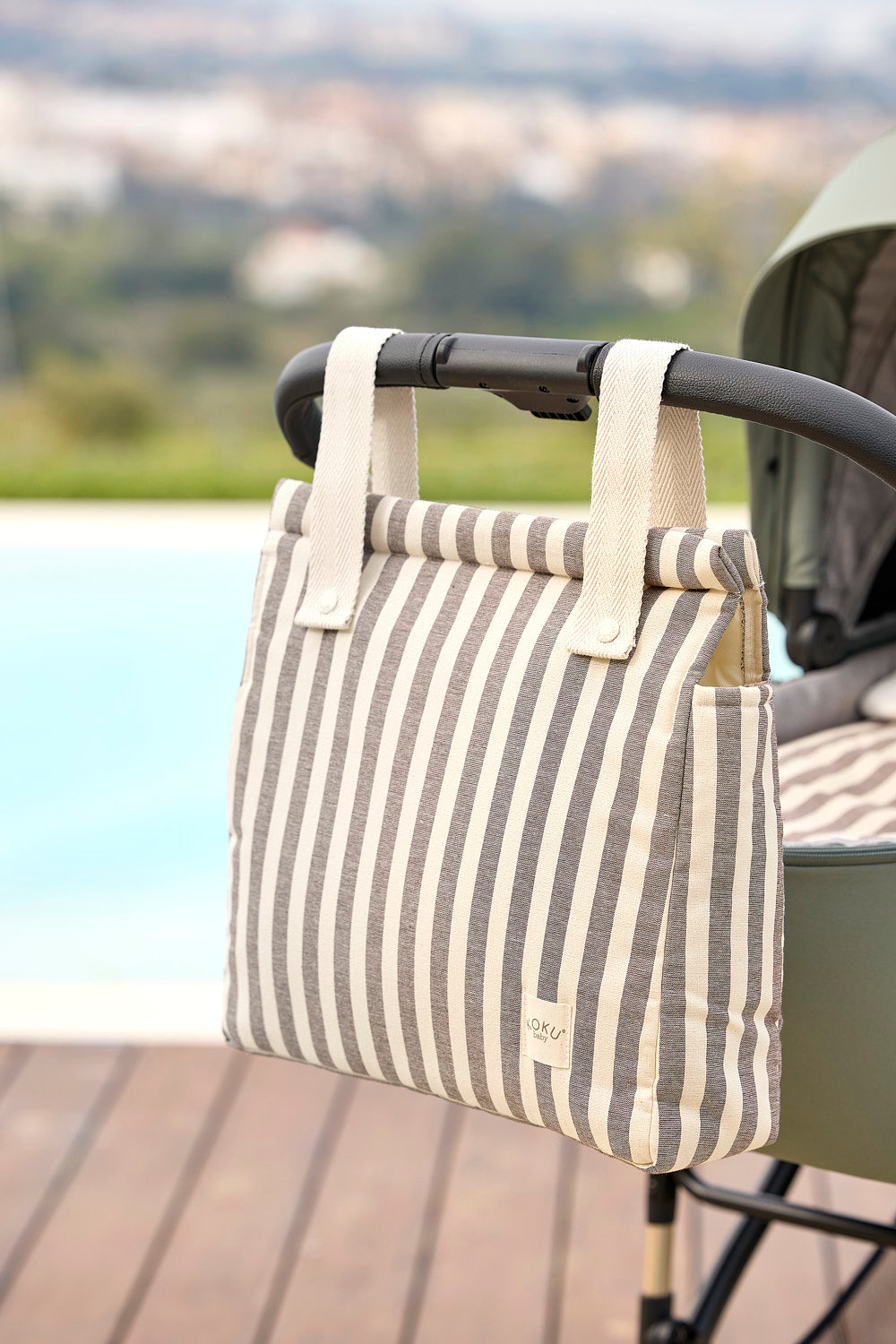 "El bolso para silla es precioso y muy práctico. Caben un montón de cosas y se engancha fácilmente a la silla. Además, el nombre bordado le da un toque súper especial."