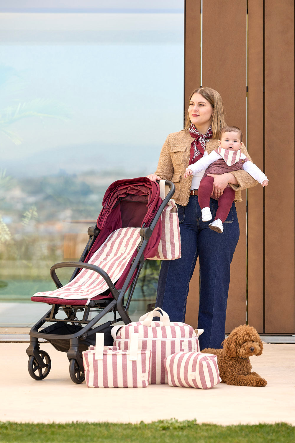 BOLSO MATERNIDAD STRIPE GRANATE 30x47