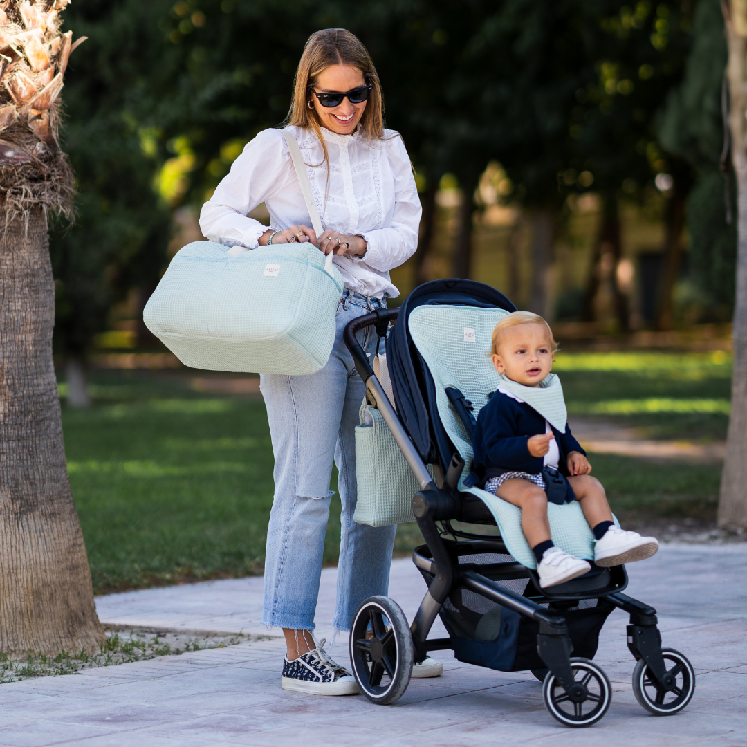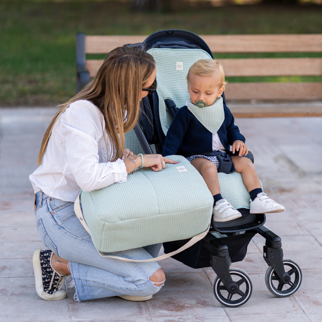 Tapis de poussette universel. Fabriqué en Espagne avec des tissus de haute qualité résistants à l'usure, matelassé avec un rembourrage hypoallergénique et doté d'un envers en tissu 3D, ce tapis est confortable et respirant. Nous fabriquons tous nos articles en Espagne, ce qui nous permet de réaliser une confection précise et un contrôle qualité sur chacun d'eux.
