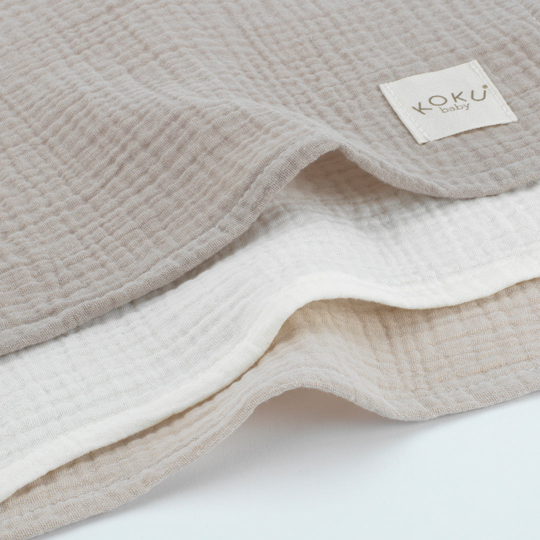 Nos mousselines sont fabriquées à partir de bambou 100 % coton, ce qui les rend douces, respirantes et douces pour la peau de bébé.