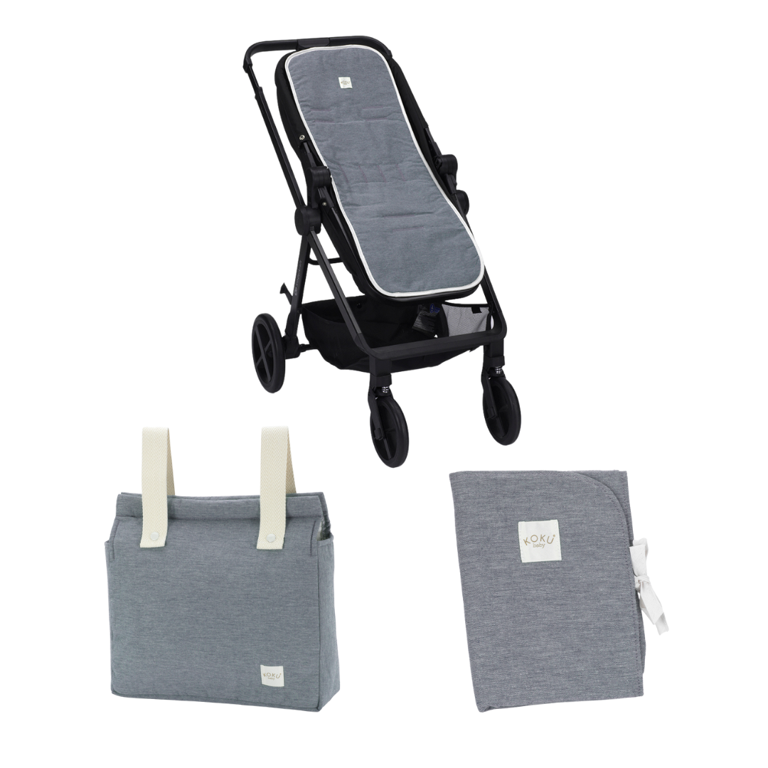 Ce fabuleux pack se compose d'une chancelière + d'un sac à langer + d'un matelas à langer imperméable.