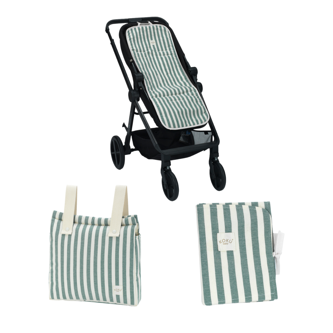 PACK 3 PIÈCES RAYÉ VERT KAKHI