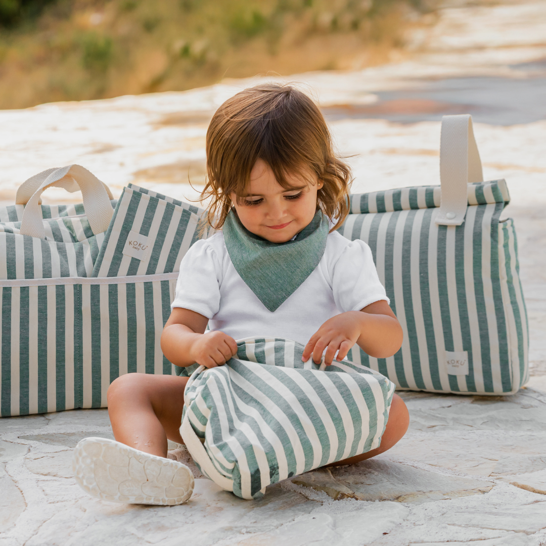 BOLSO PANERA STRIPE GREEN KHAKI 30x34