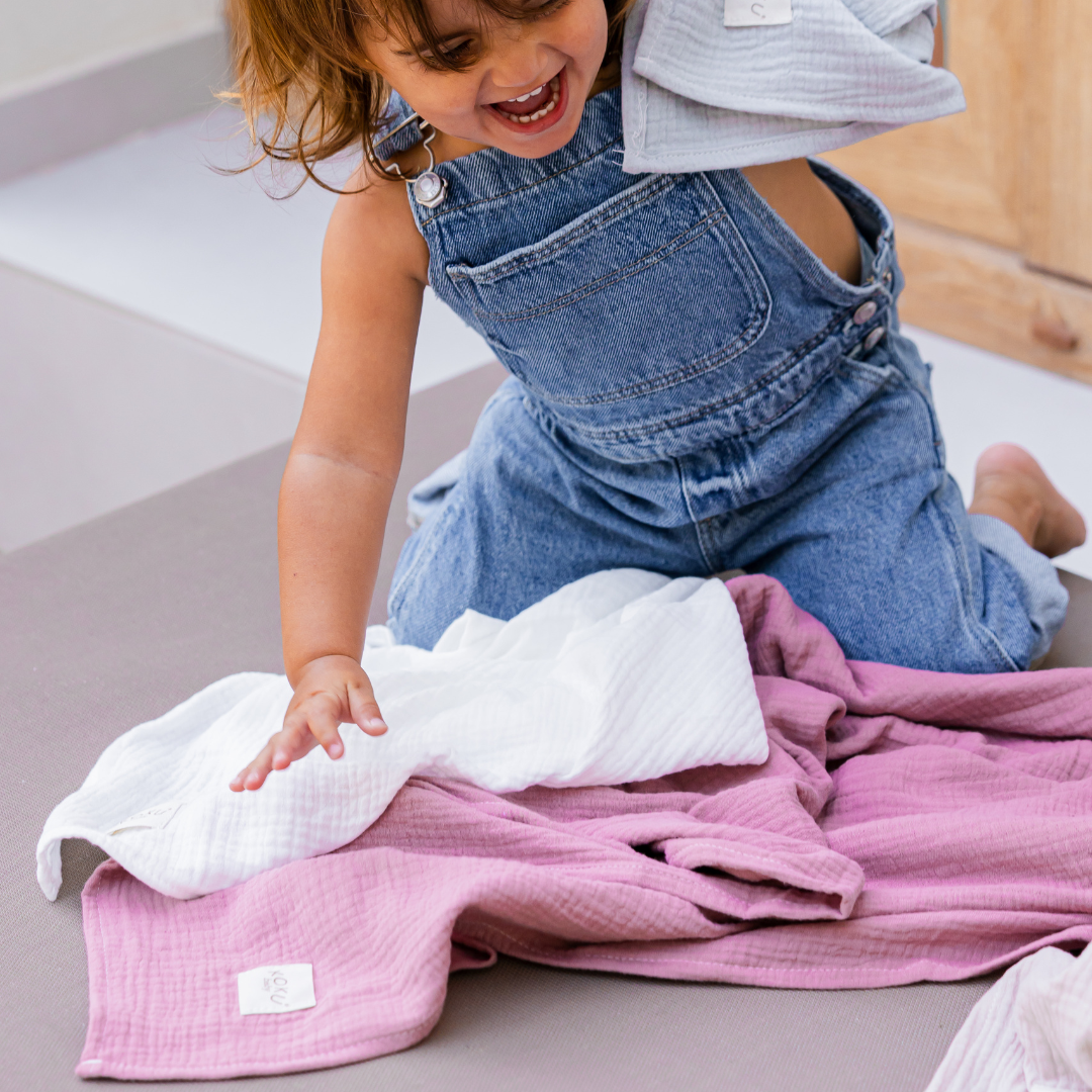Perfectas para múltiples usos: arrullo, protector, manta ligera o para cubrir el cochecito. Un imprescindible en el día a día de cualquier mamá o papá.