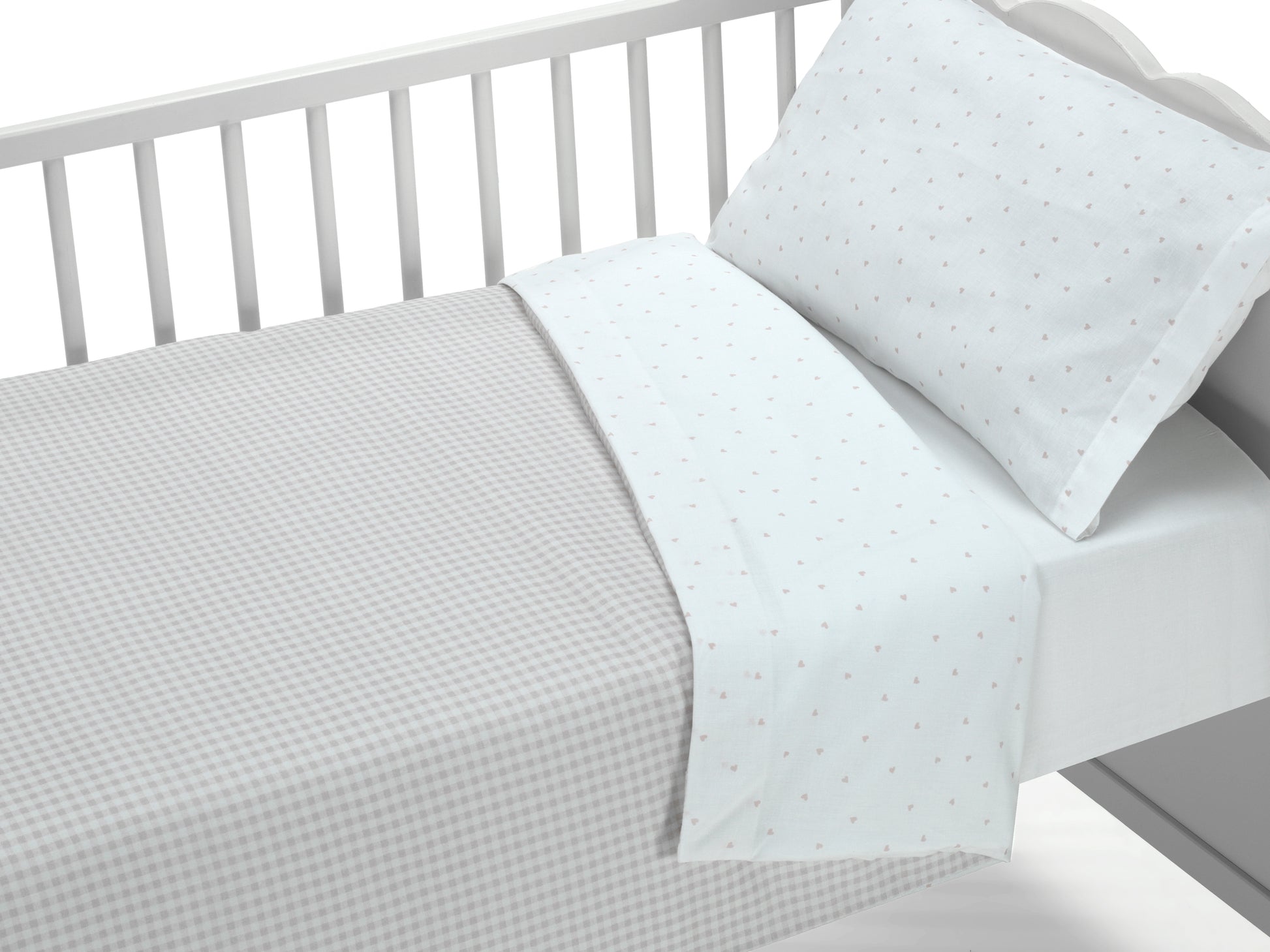SET FUNDA NÓRDICA REVERSIBLE, FUNDA DE ALMOHADA Y SÁBANA BAJERA AJUSTABLE LOVE & VICHY PEACH DREAMS 60x120